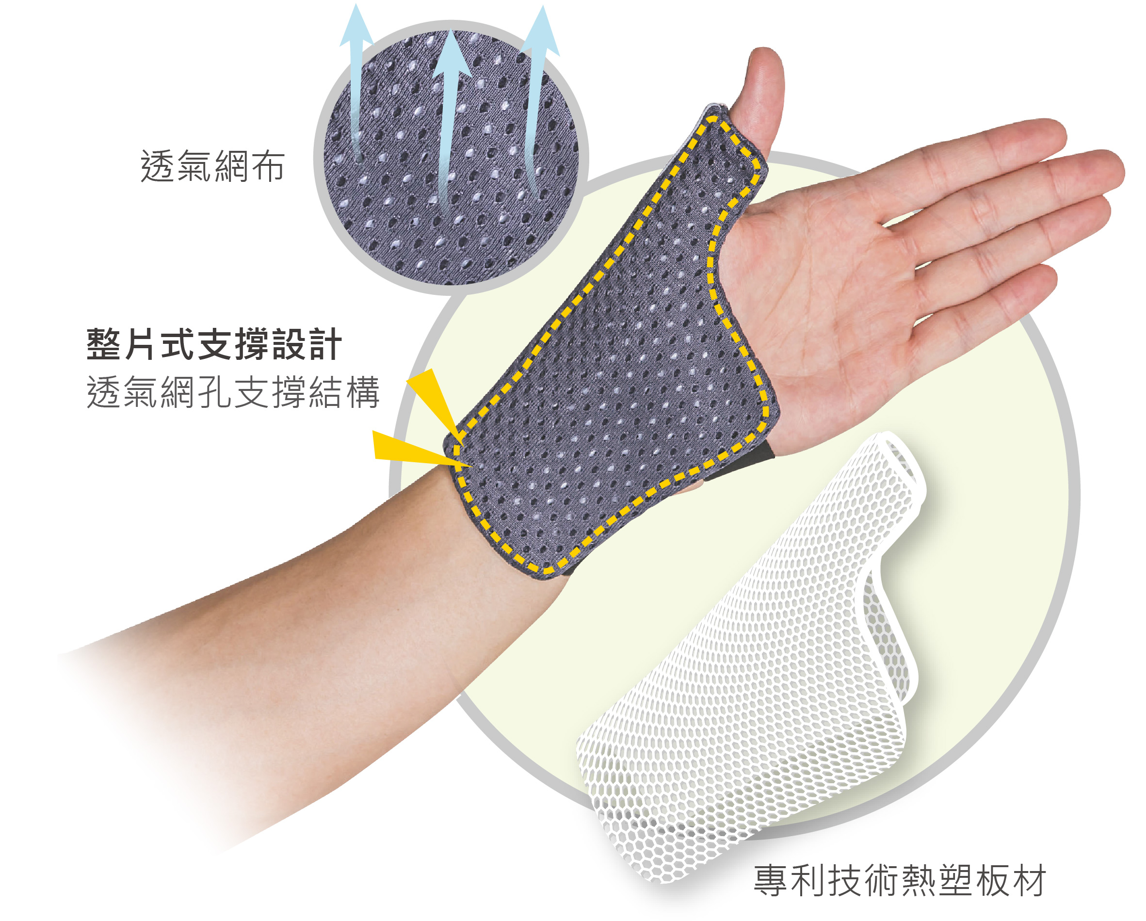 內含熱可塑性支撐材料,可客製化塑型支撐手腕。