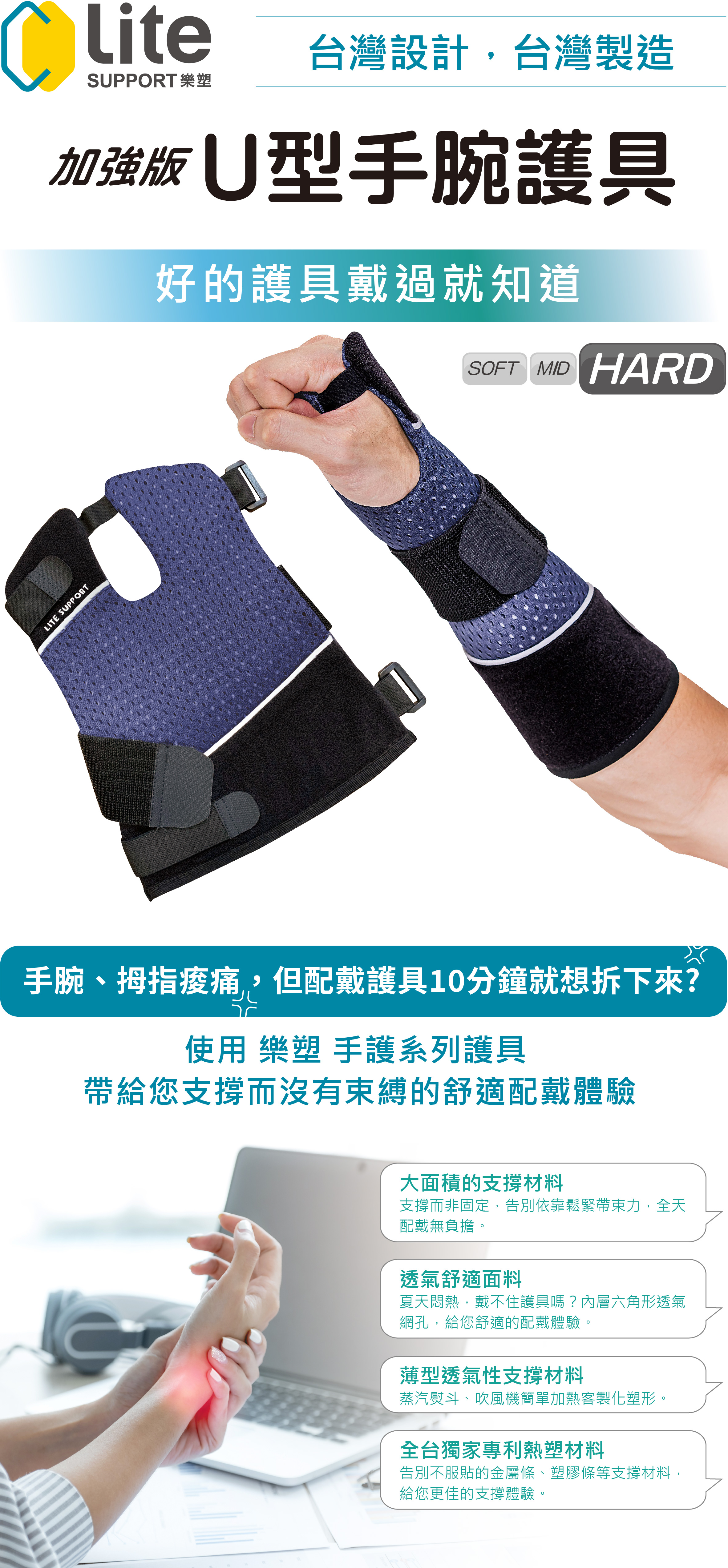 樂塑®手護系列 加強版U型手腕護具