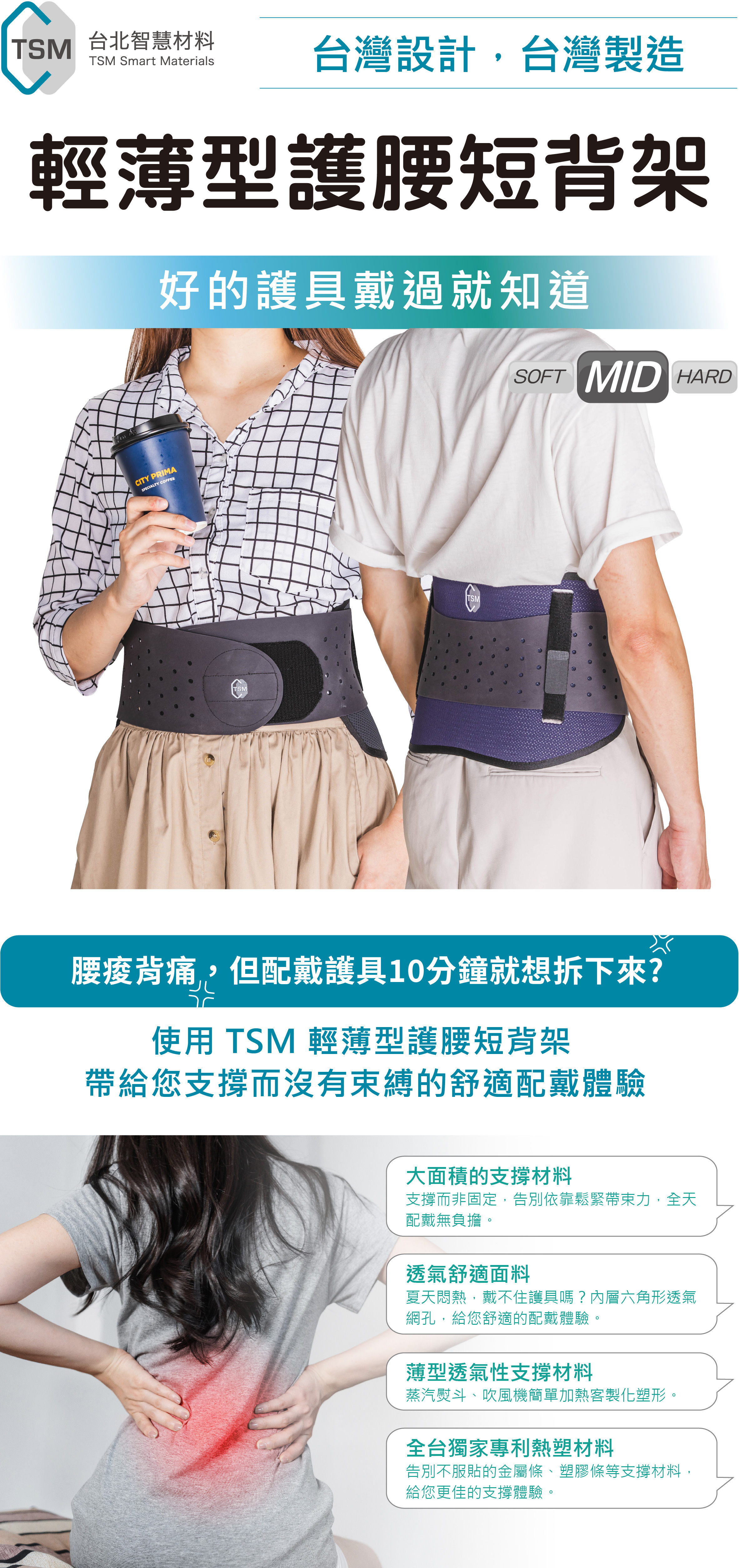限制腰背活動但不壓迫,全天配戴無負擔。