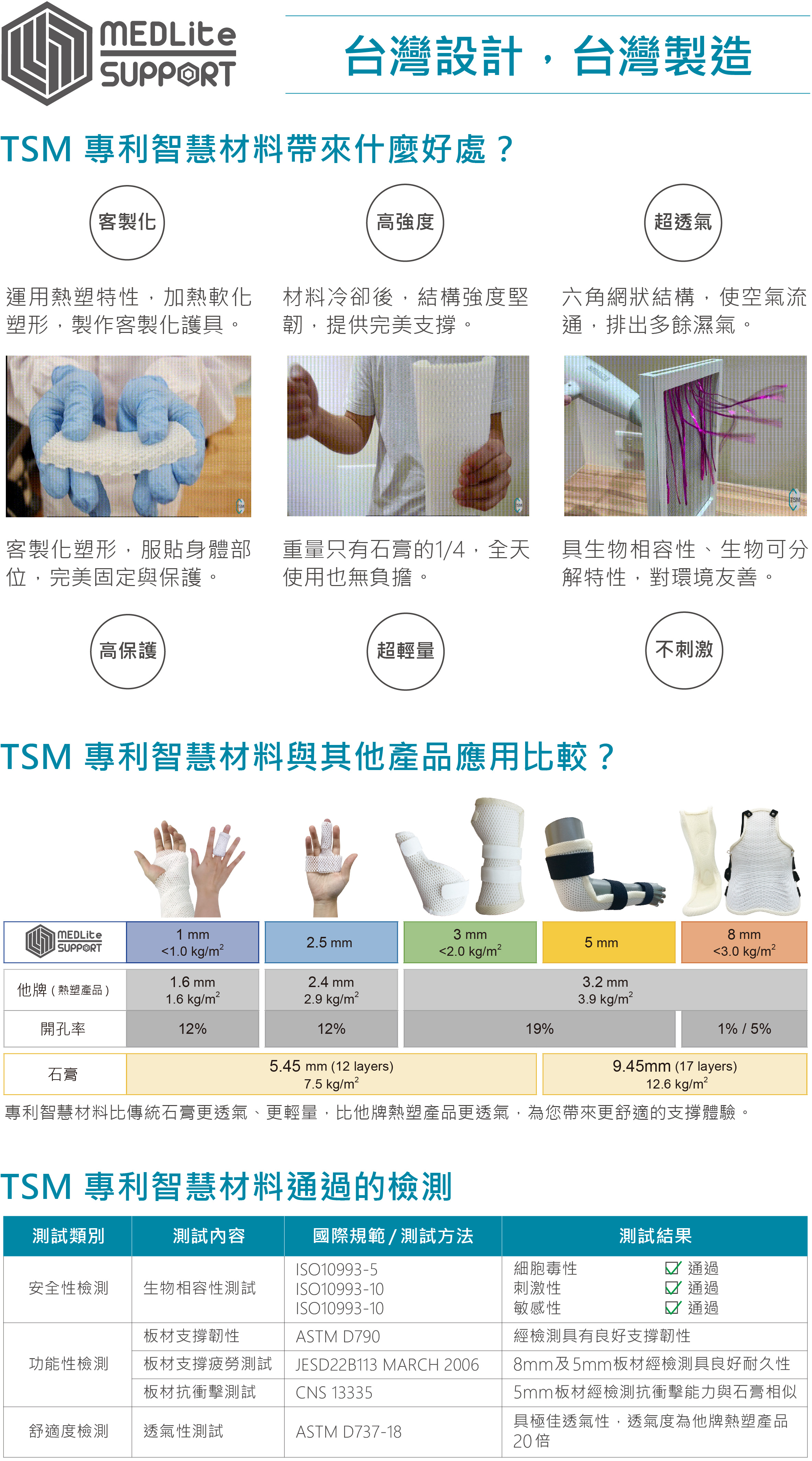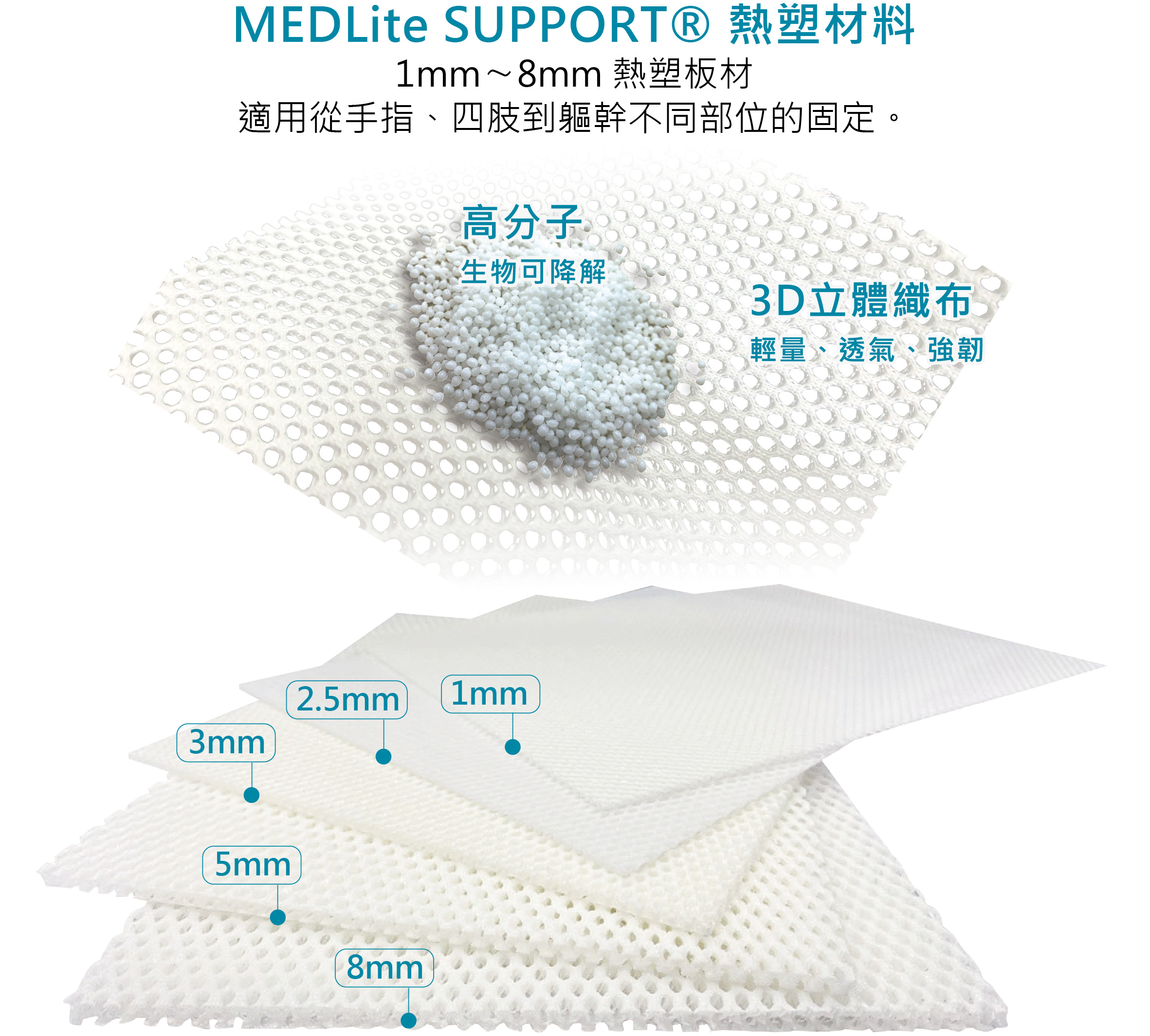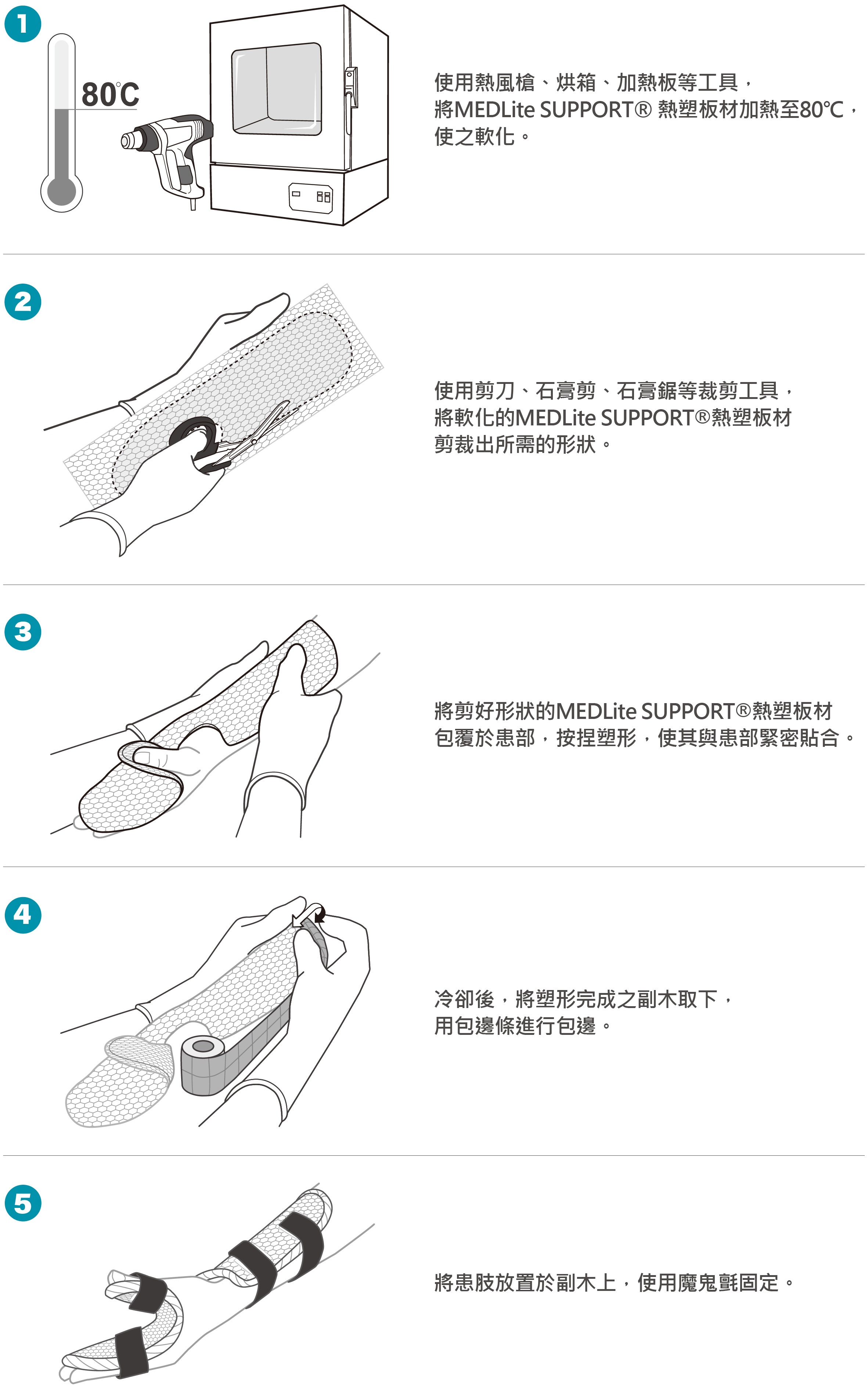 MEDLite SUPPORT® 熱塑板材是用於骨科與復健科製作固定與支撐之副木材料,應由專業醫療人員操作使用。